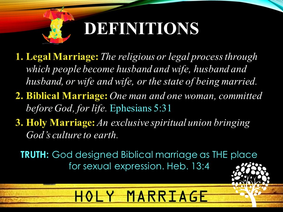 HolyMarriageTitleToday Jon, my awesome son-in-law, and i started a 3-week series called Holy Sexuality. Our topic today was Holy Marriage.